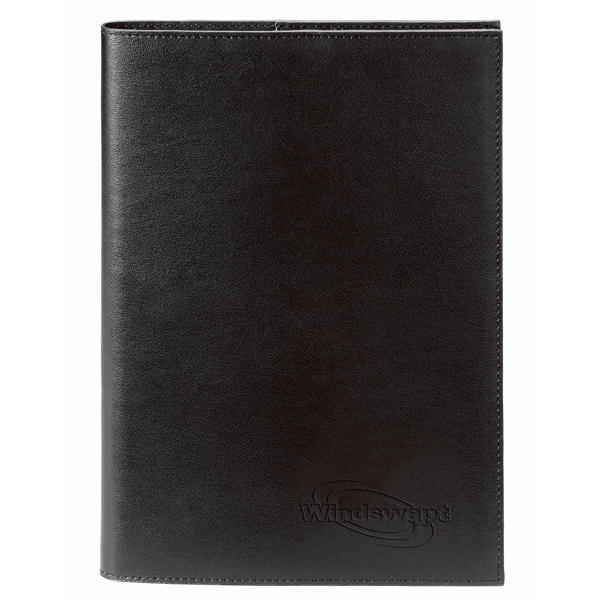 Untreated, sun-dried bonded leather cover. Universal recycling symbol debossed on back cover. Raw bonded leather pen loop. Includes 100 sheets of unlined recycled paper with recycling symbol printed on each page. Four removable metal binder rings for adding and removing pages.