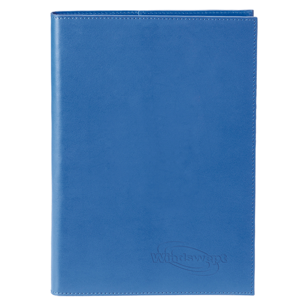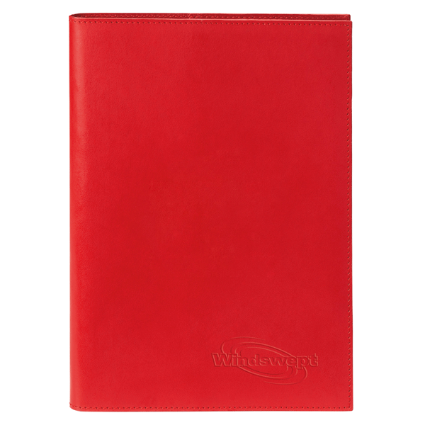 Richly colored 6 1/2" x 9 1/2" bonded leather journal cover with pen loop and a refillable spiral notebook containing 72 lined ivory sheets made from 100% recycled material (pen not included).